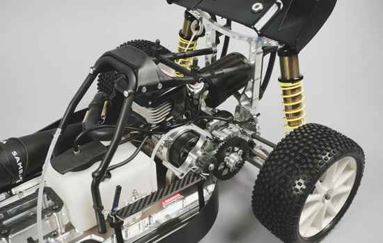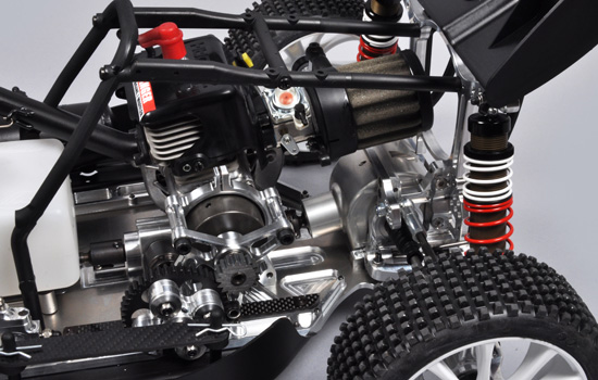 • Positie van de transmissie-elementen en RC-apparatuur voor een zeer laag zwaartepunt.