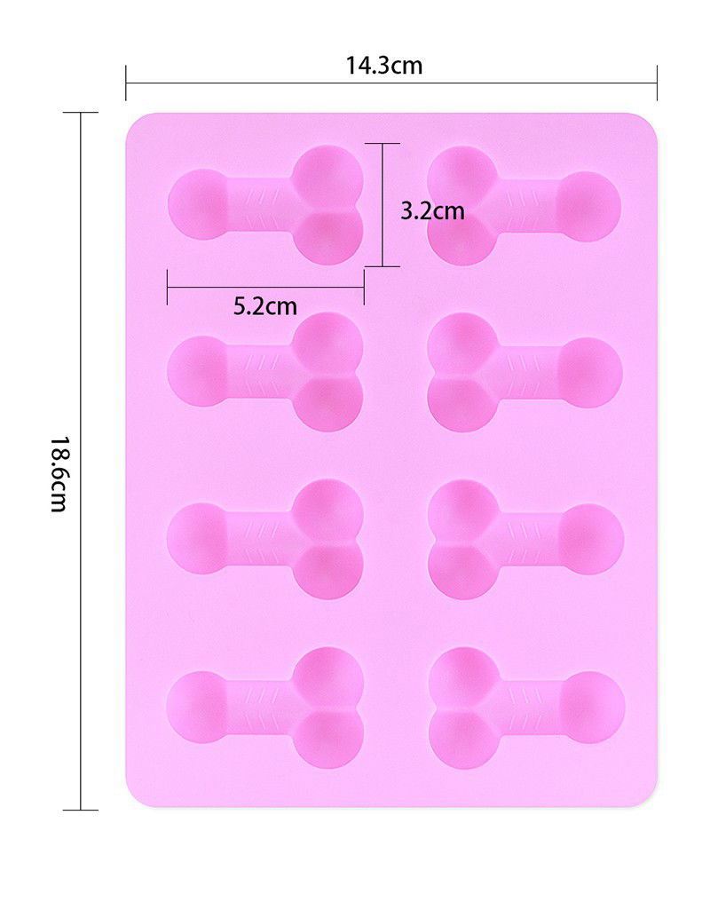 Met deze ijsblokjesvorm is er ruimte voor 8 penisvormige ijsblokjes. Je kunt water of chocolade in de vorm gieten. Perfect voor een vrijgezellenfeest of als cadeau. De penisvormen hebben een lengte van 5.2 cm en een breedte van 3.2 cm.