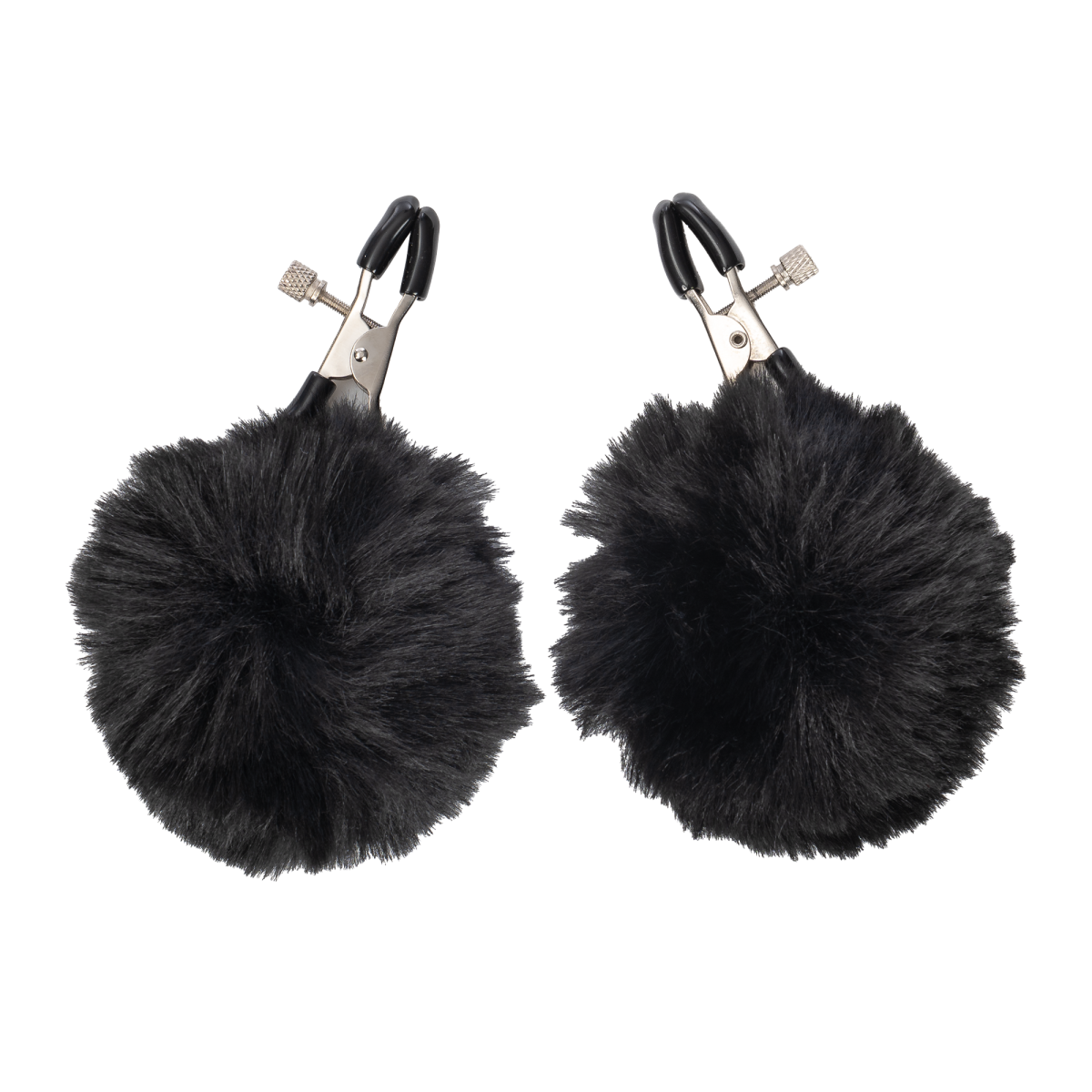 De klemmen zijn lichtgewicht en afgewerkt met zachte, zwarte pompons die verleidelijk bewegen bij elke aanraking.