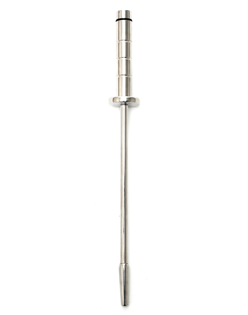 Deze roestvrijstalen trillende urethrale plug is 230 mm lang en heeft een diameter van Ø 8 mm. Het wordt geleverd in een PU-hoes en werkt met 1x AAA-batterij.